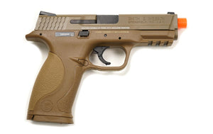 The S&W M&P 9 GBB - Tan is a gas powered, gas blowback airsoft pistol. Officially licensed by S&W, this beautiful airsoft handgun offers great blowback feel, while maintaining accuracy down 60 yards.